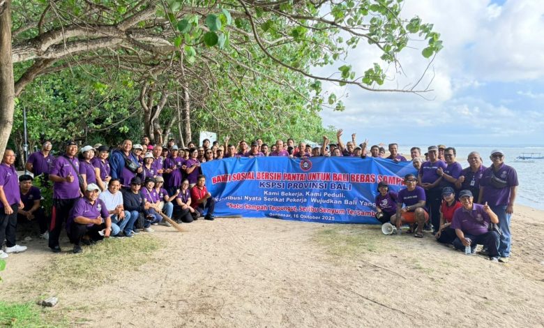 DENPASAR, Matakompas.com – Dalam upaya menumbuhkan kepedulian terhadap lingkungan, Konfederasi Serikat Pekerja Seluruh Indonesia (KSPSI) Bali menggelar aksi kegiatan bakti sosial kemasyarakatan dalam bentuk bersih-bersih pantai yang berlangsung di pantai karang Sanur Denpasar.